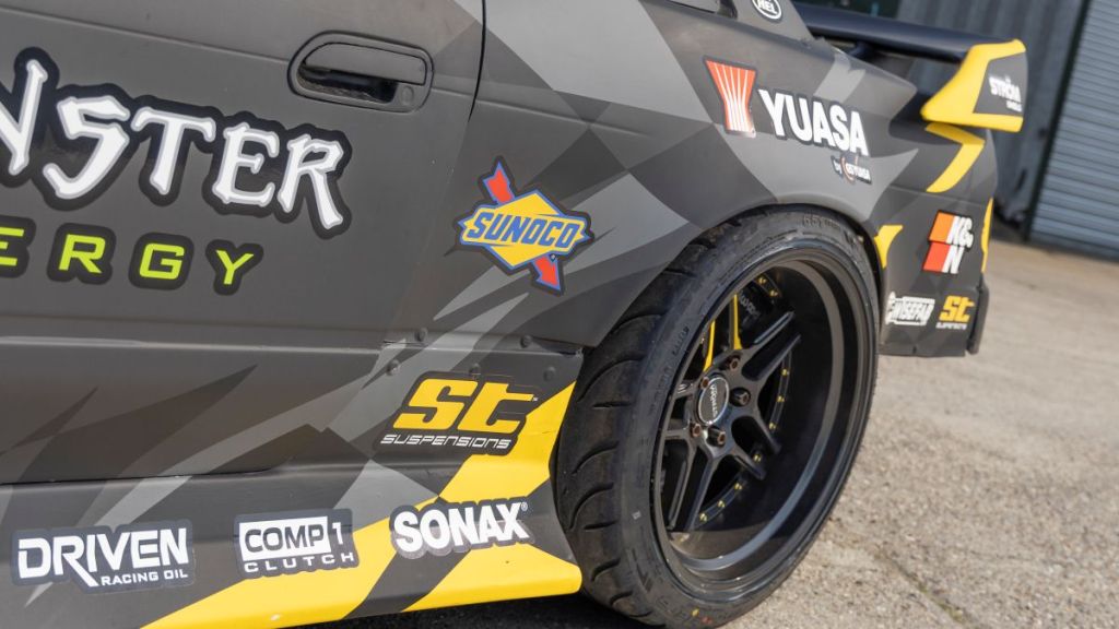 Baggsy’s blunt about it: this PS13 feels like home. He knows exactly how it reacts, how it loads up mid-corner, and where it delivers its punch. “You get in it and you just… know what it’s going to do,” he explains. It’s a very reliable package that’s carried him through multiple podiums and even a win in Ireland. He campaigned the car in Drift Masters for four or five seasons, learned its every quirk, and still lights up when he talks about driving it.